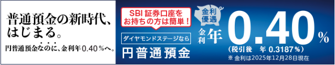普通預金の金利は年0.40%。