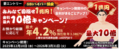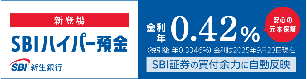 SBIハイパー預金の金利は年0.42%。