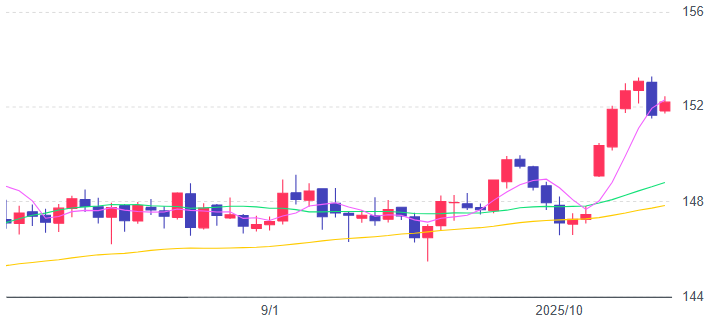 最近は1ドル148円前後でしたが、一気に153円近くまで円安になりました。