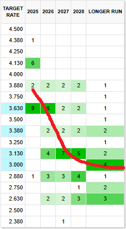 上図(赤線は私が加筆)の通り米金利が3.0%になるのが予想だが、この程度では円高にはならない。
