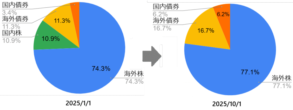 海外資産の割合が高いため、円高に弱い資産構成となっている。
