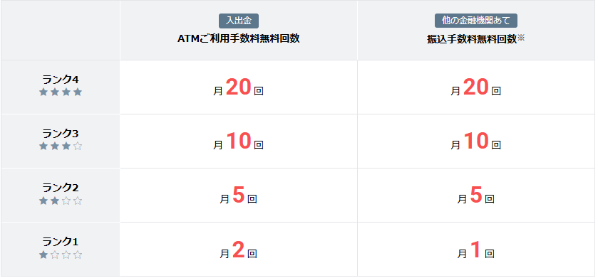 私はランク3にしていますが、ATMも振込も月に1回弱しか使っていません。