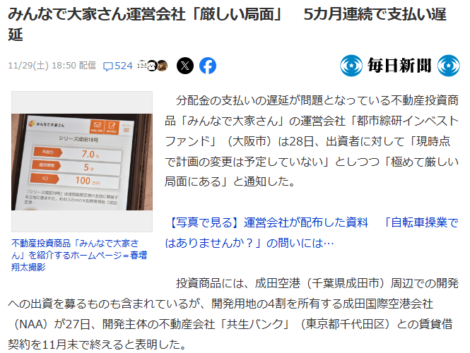 でも、分配金の支払いは滞っており、破綻も近いように見受けられます。