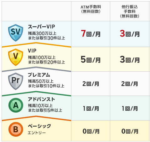 会員ランクによって、ATM手数料の無料回数が異なります。