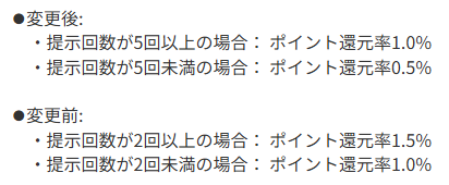 還元率も1.5⇒1.0%と改悪。