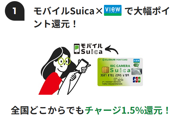 私のおすすめは、モバイルSuica(ビックカメラSuica)。